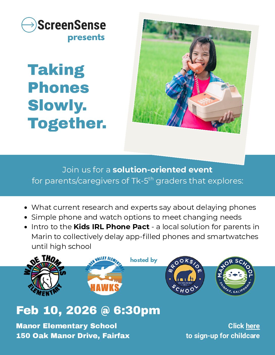 - Intro to the Kids IRL Phone Pact – a local solution for parents in Marin to collectively delay app-filled phones and smartwatches until high school